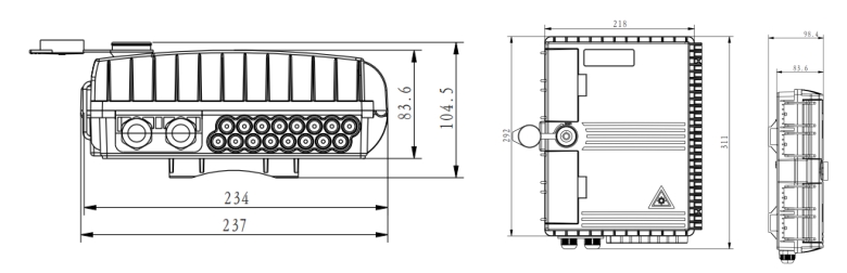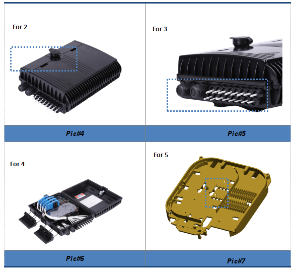 1. The body is made of high quality engineering plastic with good strength. 2. With safe special-shaped lock, the box can be opened easily and has good water-proof performance, suitable for indoor and outdoor natural environments (Pic#4 for details). 3. With the independent rubber sealing plug for drop cable, . better waterproof performance( Pic#5 for details). 4. With double-page design, the box can be installed and maintained easily, . the fusion and termination are completely separated ( Pic#6 for details). 5. The drop leaf can be installed 2 pcs of 1*8 tube splitter ( Pic#7 for details). Pictures for reference: Package Information 1. Plastic bag size: 500*410mm 2. Inner box with single corrugated size: 320*240*115mm 3. Carton with double corrugated size: 605*335*495mm(10PCS/Box) 4. Weight per carton:16.5KG